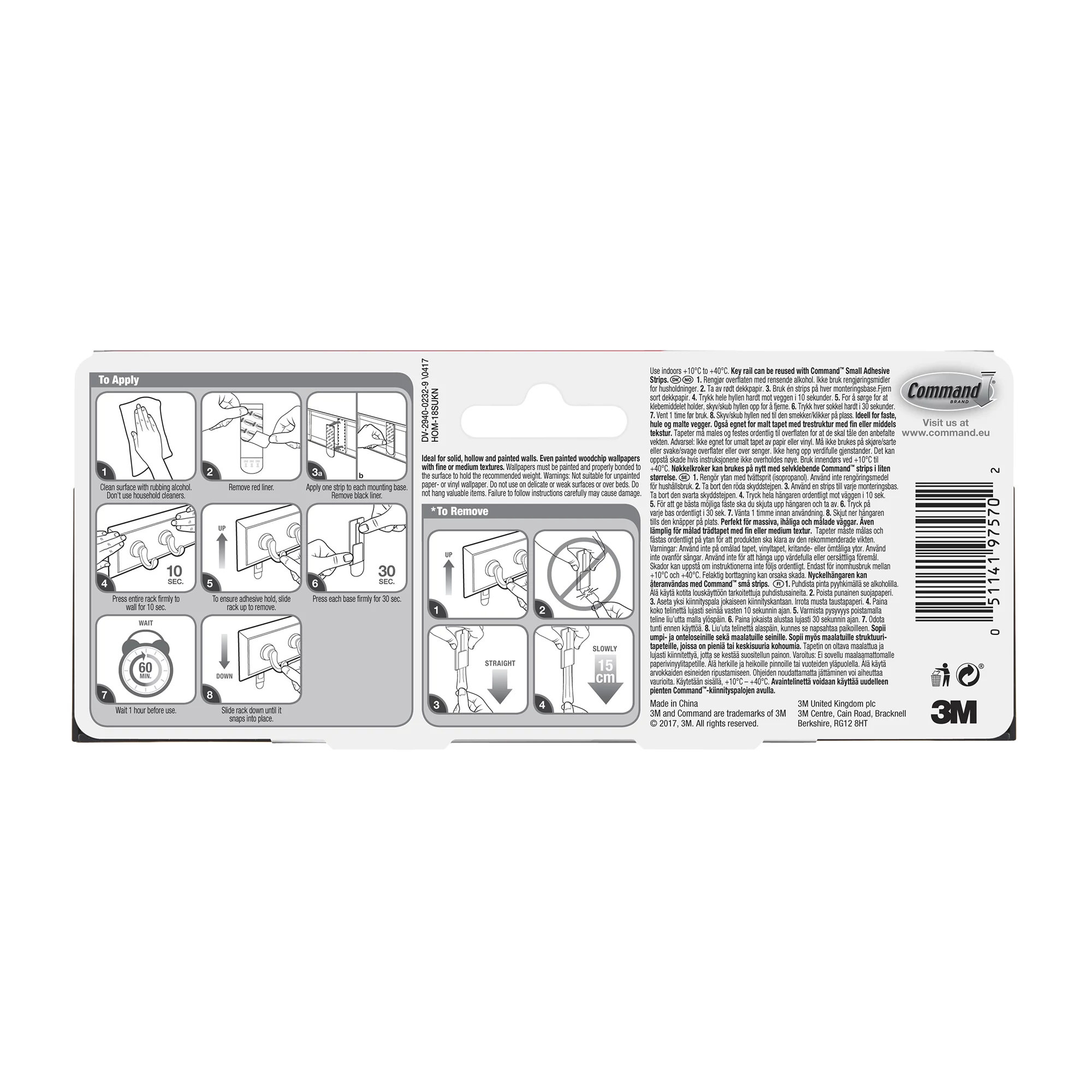 Commandâ„¢ Slate Key Rail is an innovative solution for hanging keys and other everyday items safely, securely and damage free. It holds strongly and removes cleanly using 3M stretch-release technology.
