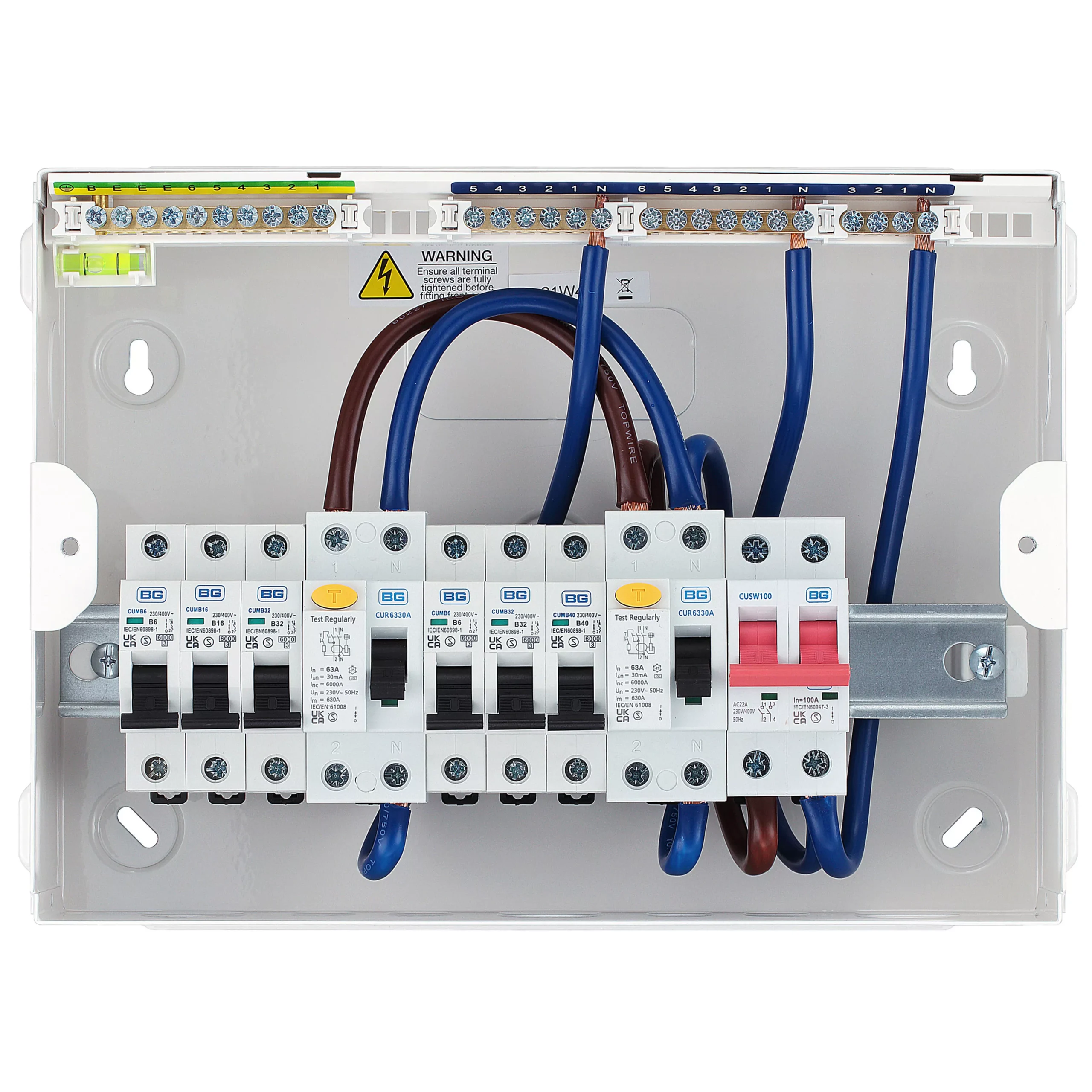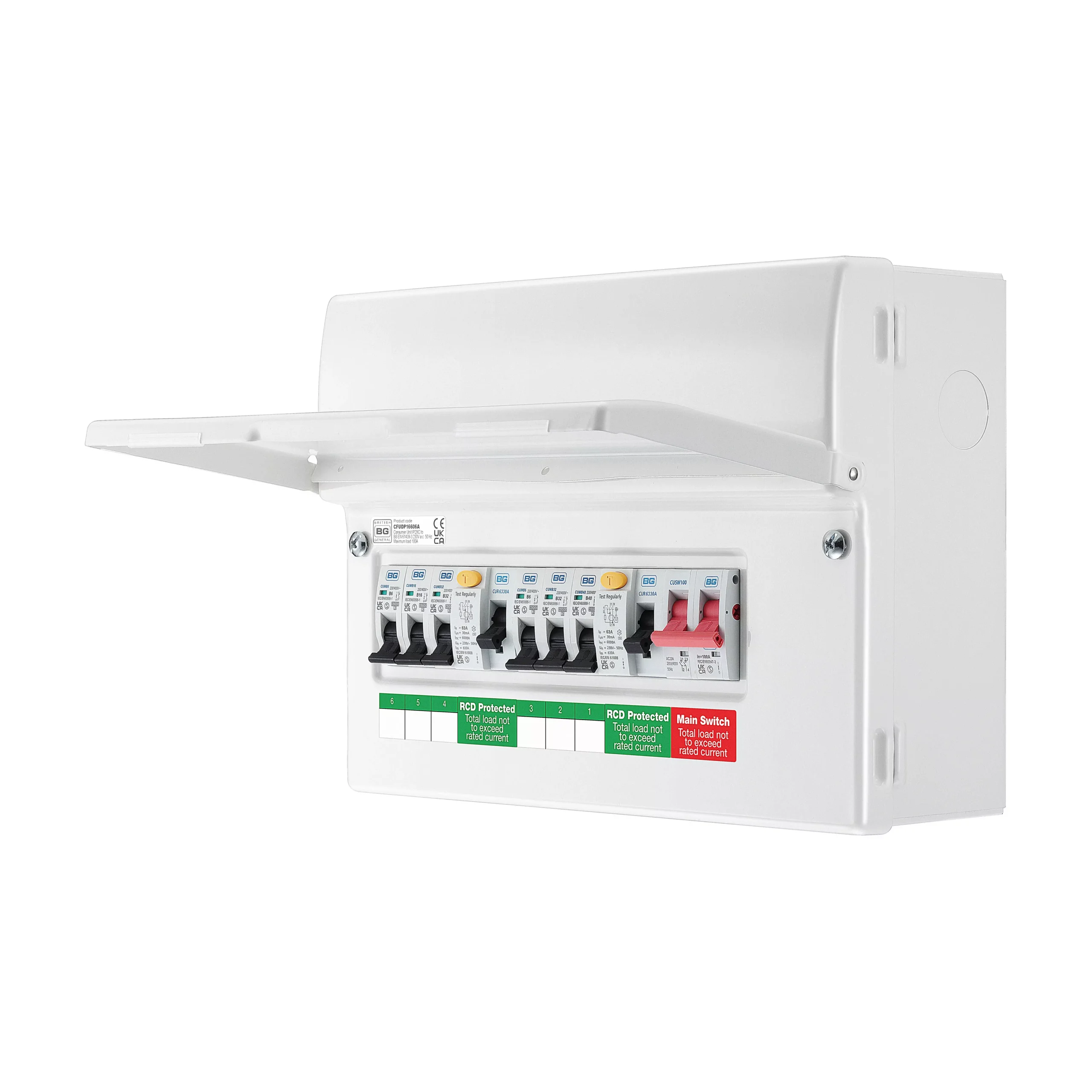 | Number of MCBS supplied | 6 x MCBs (2 x 6A, 1 x 16A, 2 x 32A & 1 x 40A) |