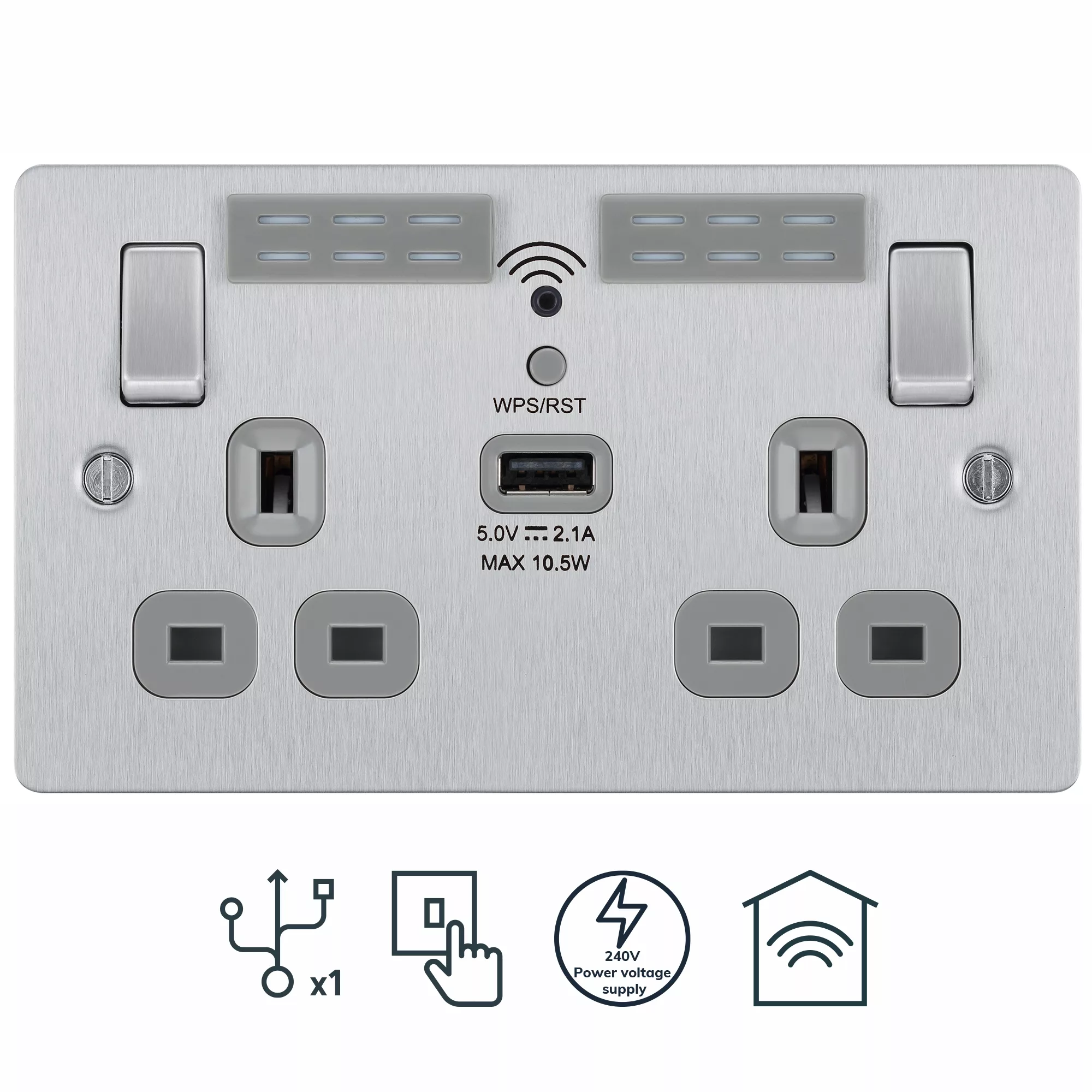 - This stainless steel finish 13A double power socket with integrated Wi-Fi extender from British General will eliminate dead spots and expand your Wi-Fi coverage.