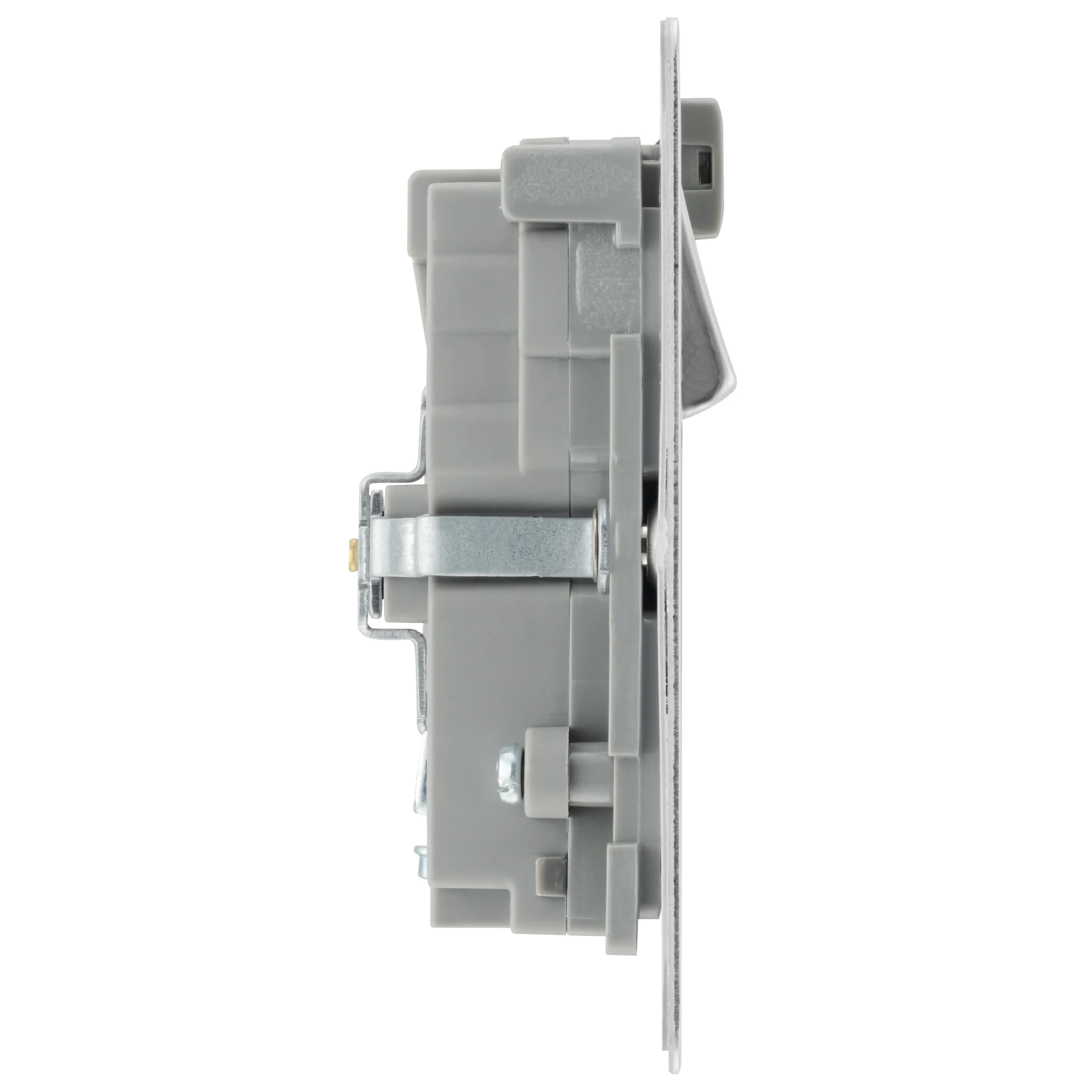 - The decorative metal flat plate has an integrated moisture control gasket and colour-match fixing screws for a stylish finish and retrofits into a standard 25mm wall box.