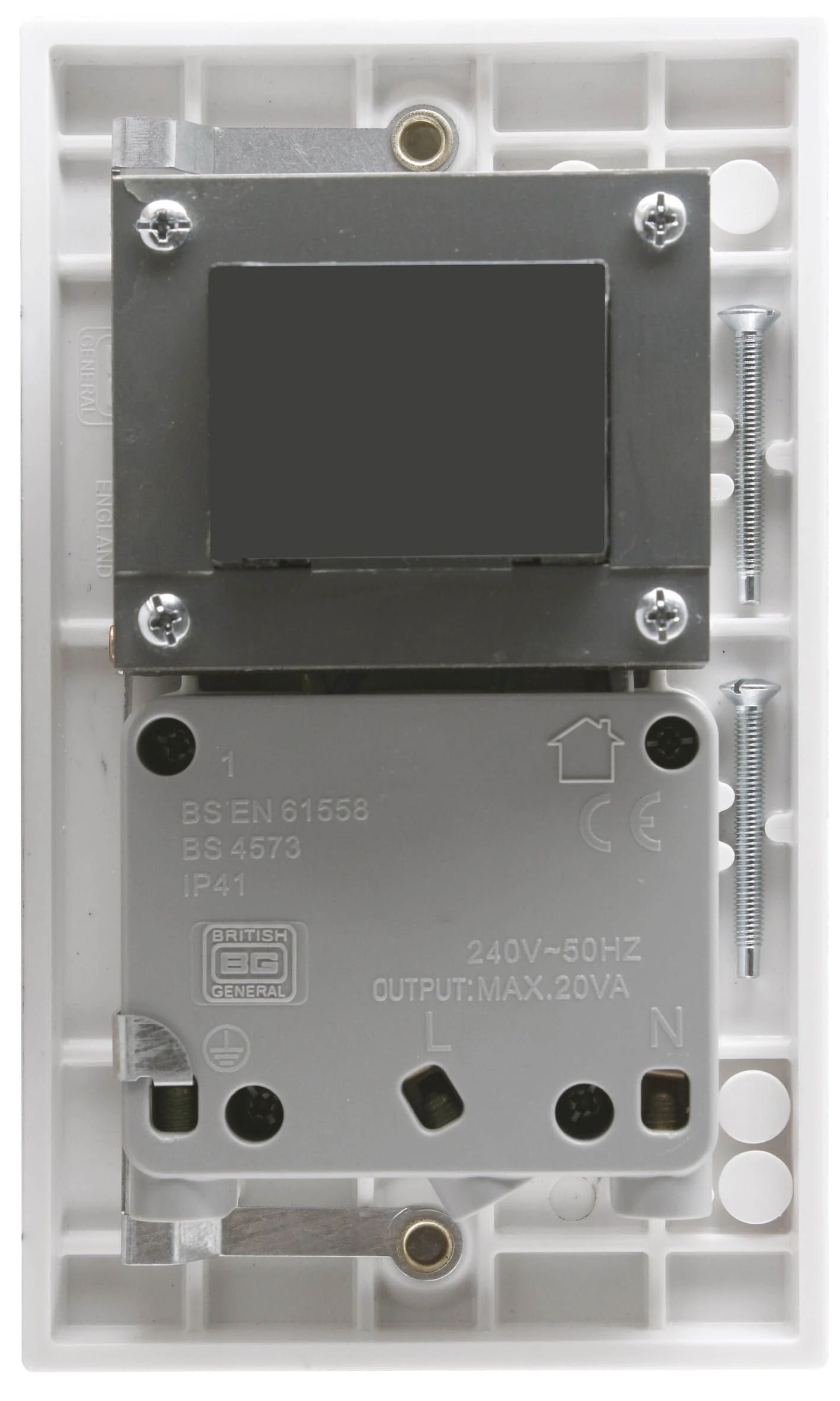 This raised profile shaver socket from British General is suitable for shavers and electric toothbrushes.