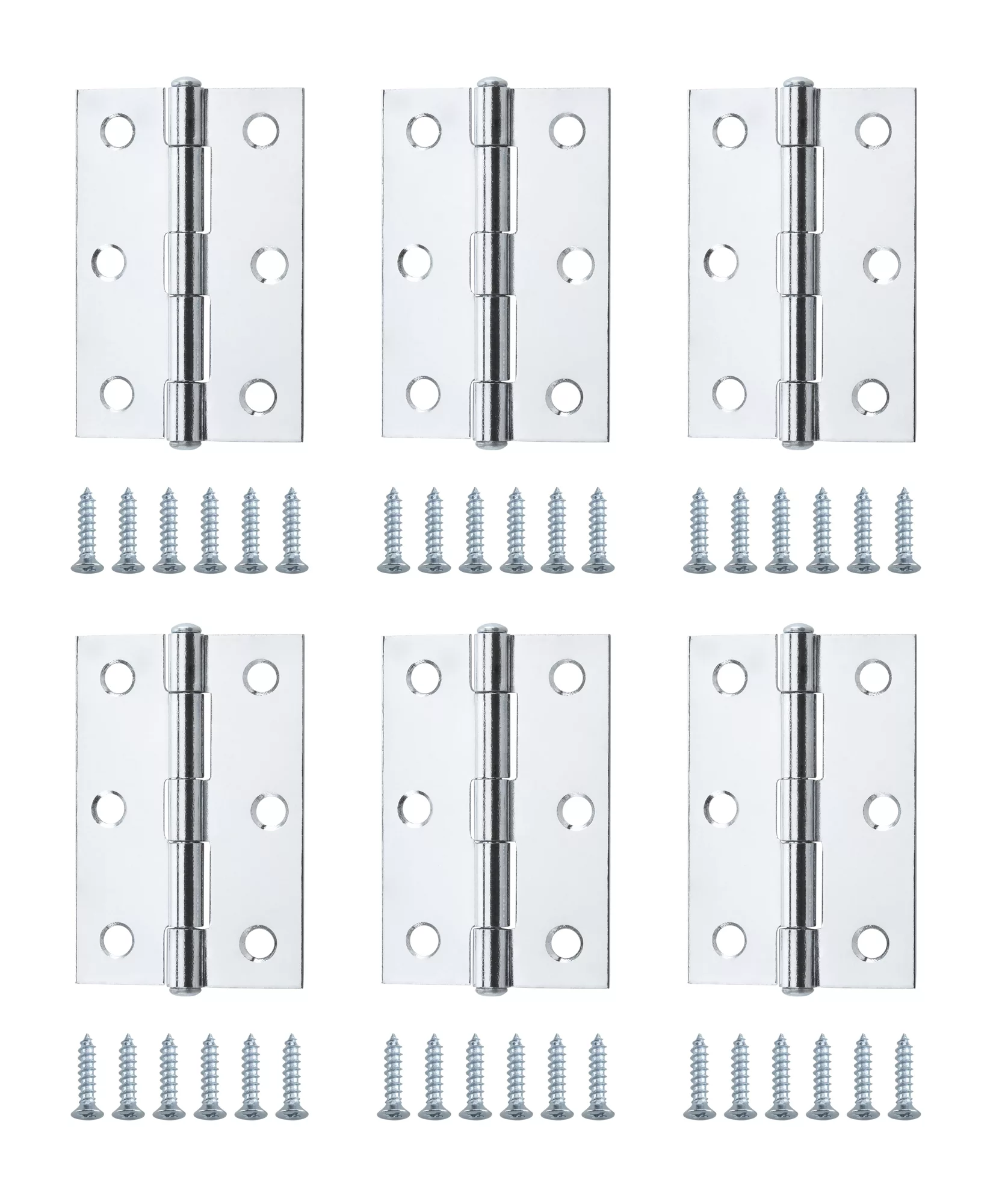 These chrome effect metal butt hinges are suitable for hanging doors in and around the home. Fixings supplied for quick and simple installation.