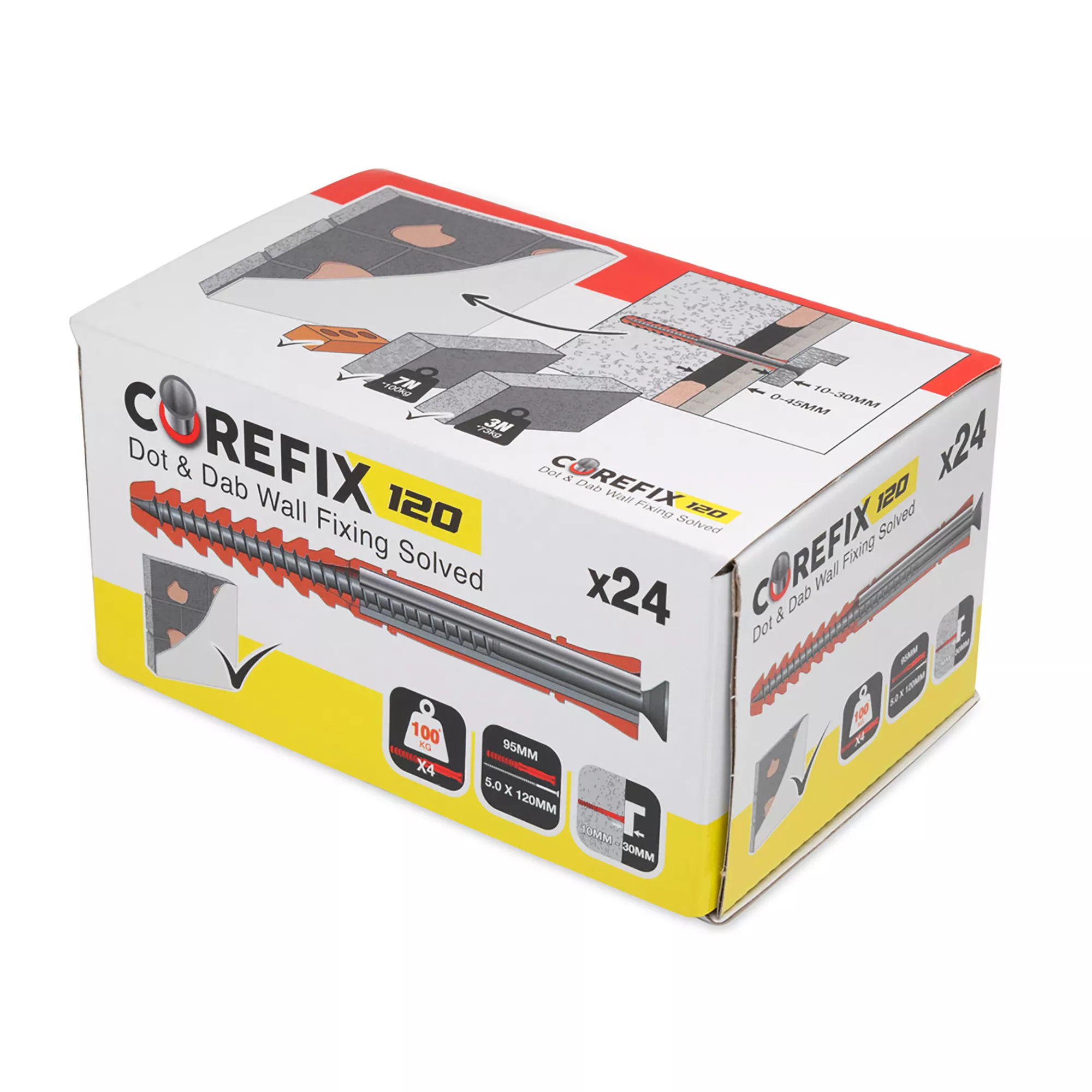 Heavy duty fixing for dot and dab or drylined walls for all brick and block types. Steel core bridges the gap and transfers load to the blockwork. Ideal for large TVs, wall units, shelves, boilers and radiators.