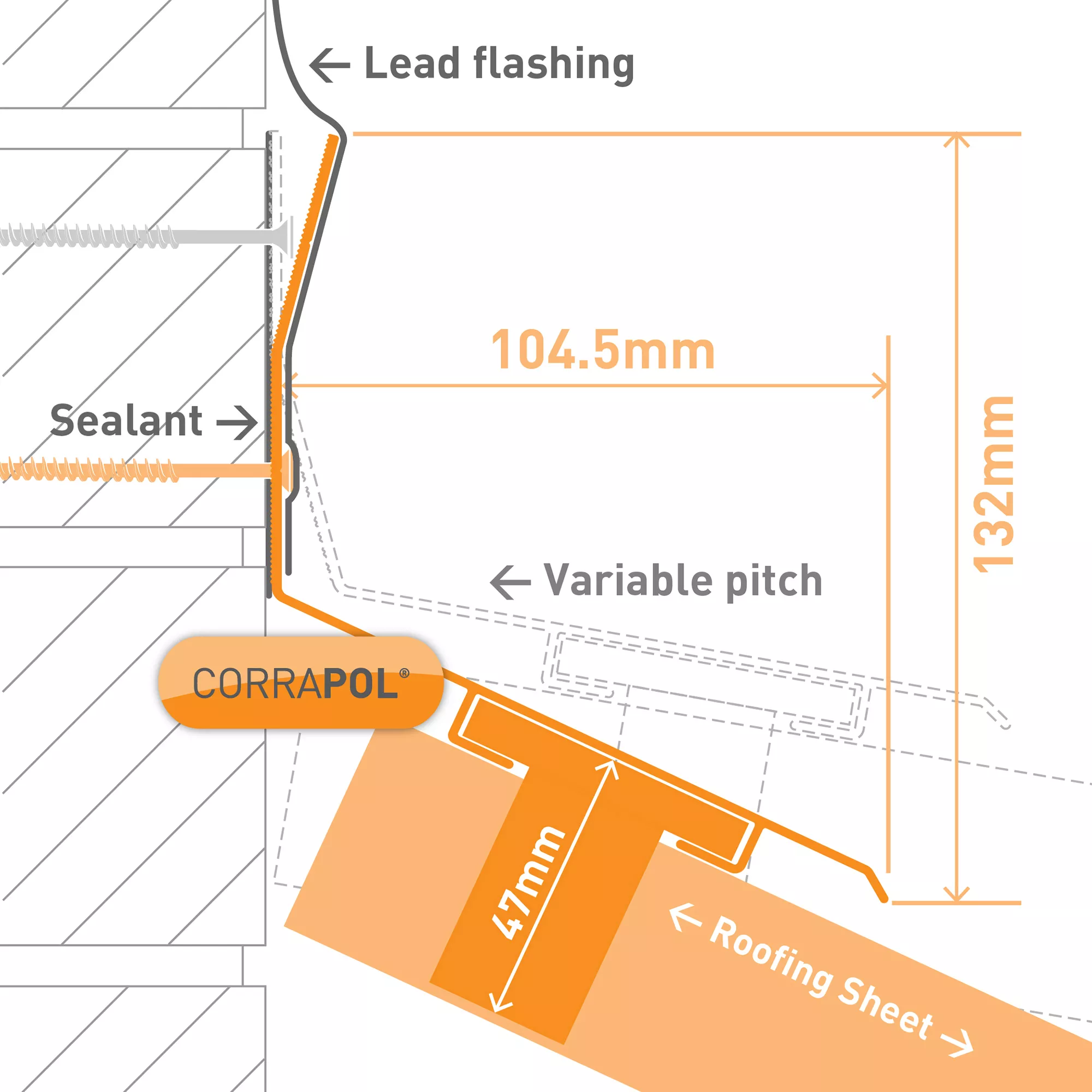 This Corrapol® Rock n Lock wall flashing is a completely unique aluminium side flashing for use with corrugated sheets where the side is against a wall.