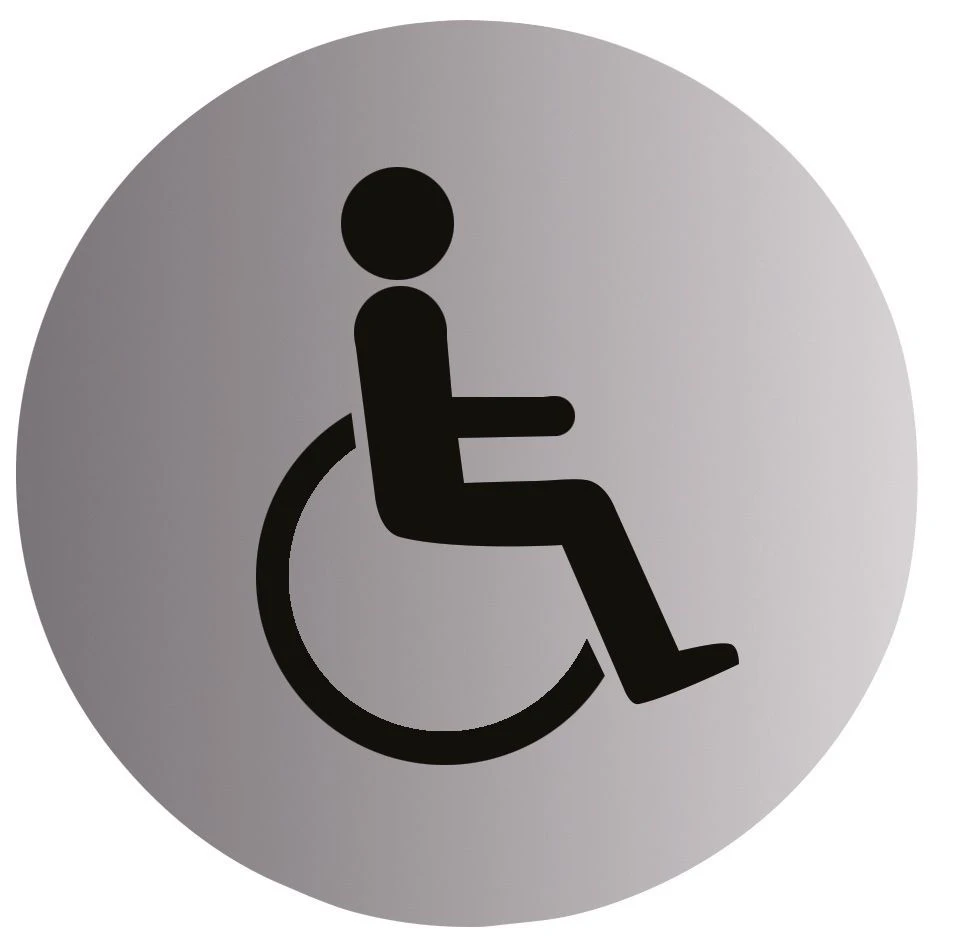 Use this stainless steel disabled advisory sign self-adhesive sticker label to inform people about disability access and areas at a location