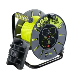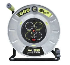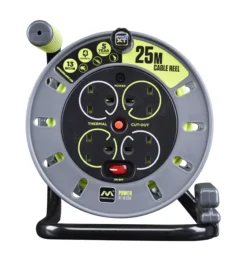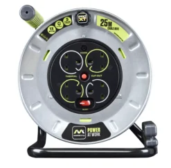 Masterplug IP54 Rated Reverse Anti Twist 1 Socket Grey & Green Indoor & Outdoor Cable Reel, 30m