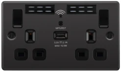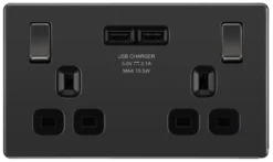 GoodHome Black Nickel Double 13A Screwless Switched Socket With USB X2 3.1A & Black Inserts