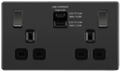 GoodHome Black Nickel Double 13A Screwless Switched Socket With USB X2 4.2A & Black Inserts
