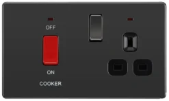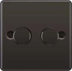 GoodHome Brushed Steel Double 13A Screwless Switched Socket With USB X2 4.2A & Grey Inserts