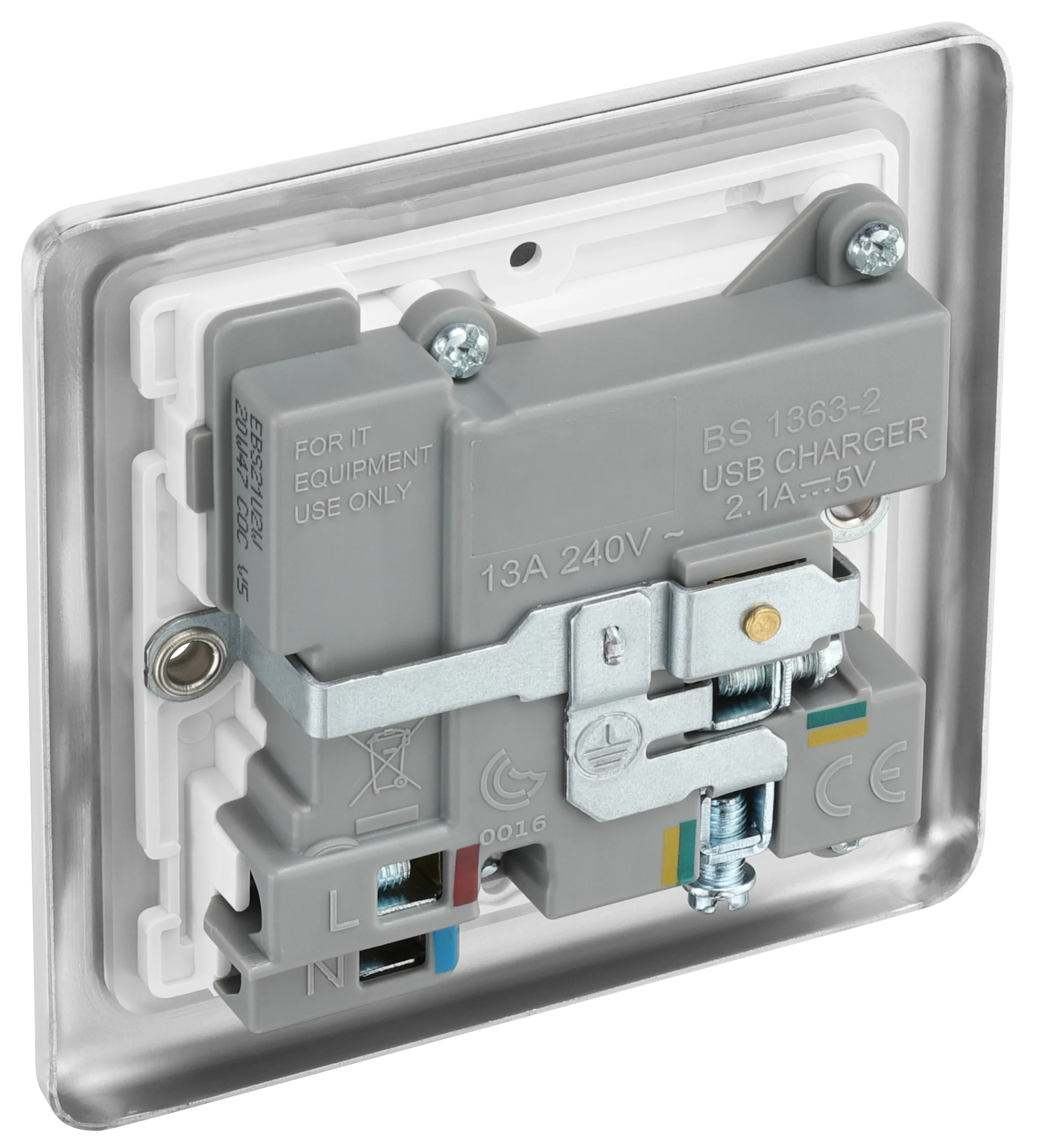 Sleek, stylish design, that has a slim profile, it is a great replacement to traditional sockets and easy to fit. The socket allows you to plug in appliances whilst also charging your technology at the same time.