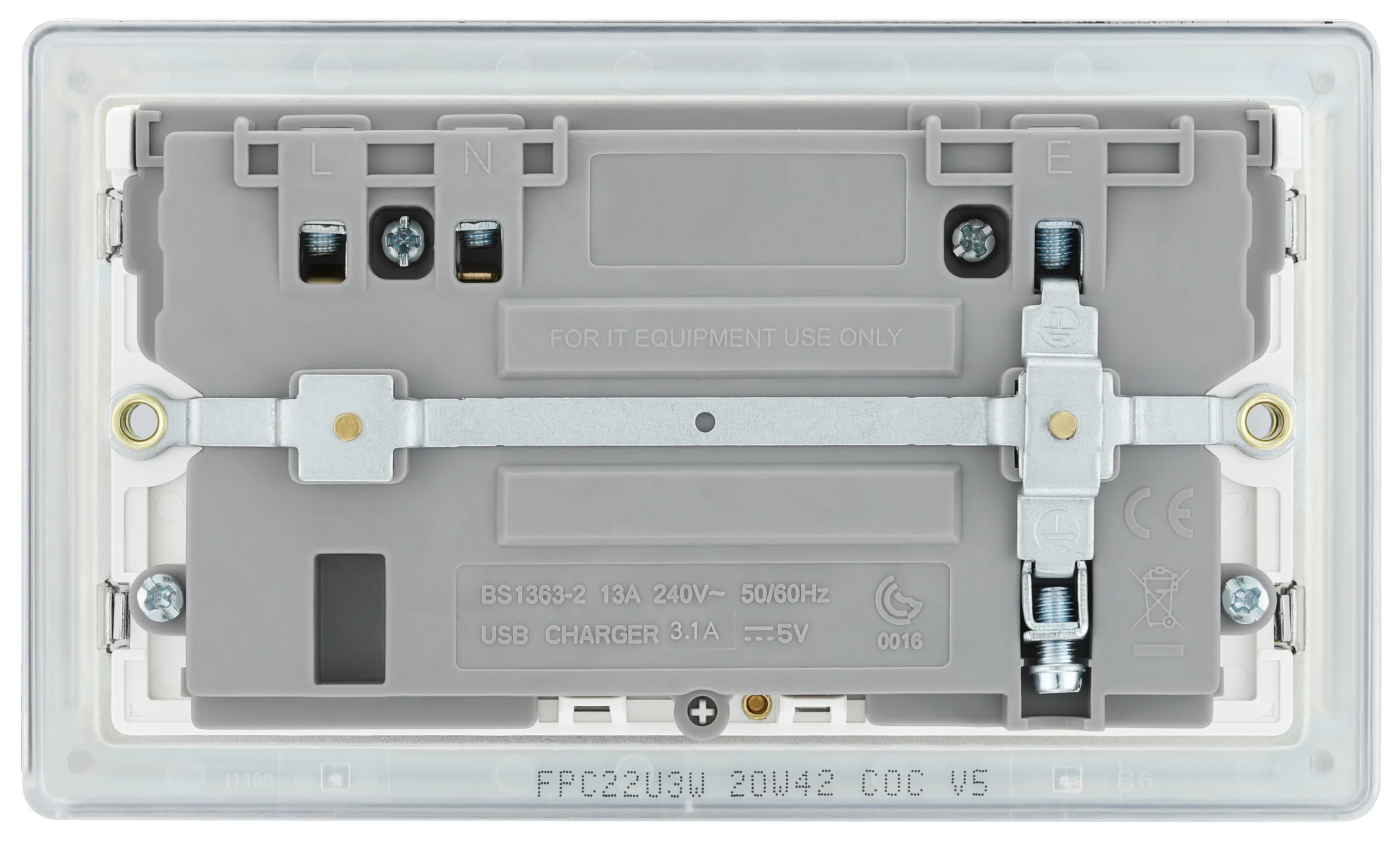 Sleek, stylish design, that has a slim profile, it is a great replacement to traditional sockets and easy to fit. The socket allows you to plug in appliances whilst also charging your technology at the same time.
