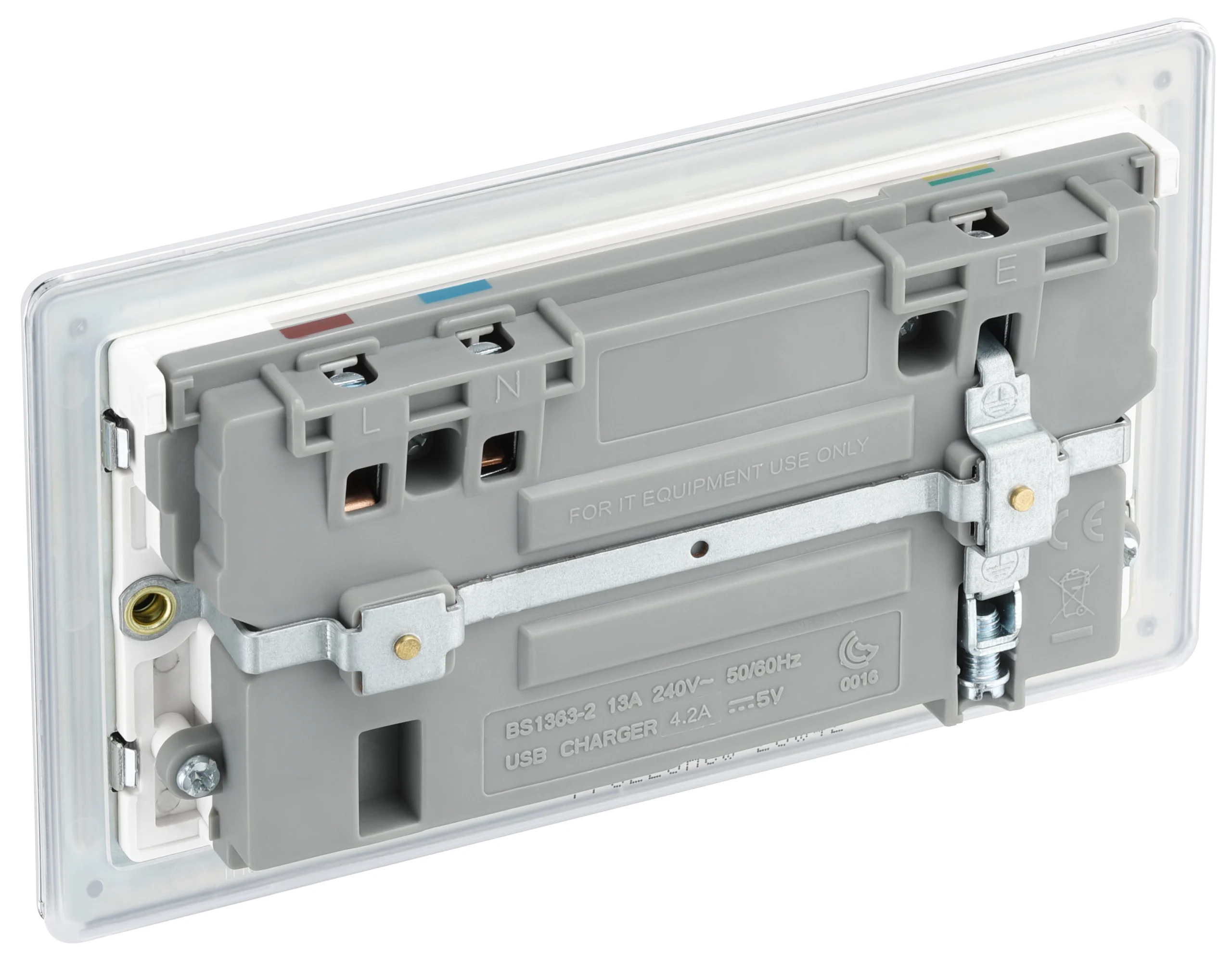 Sleek, stylish design, that has a slim profile, it is a great replacement to traditional sockets and easy to fit. The socket allows you to plug in appliances whilst also charging your technology at the same time.
