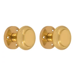 Polished Brass Effect Brass Round Door Knob (Dia)55.66mm, Pair