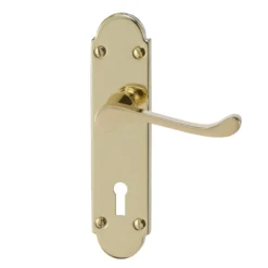Colours Beja Polished Brass Effect Steel Scroll Latch Door Handle (L)96mm, Pack Of 3