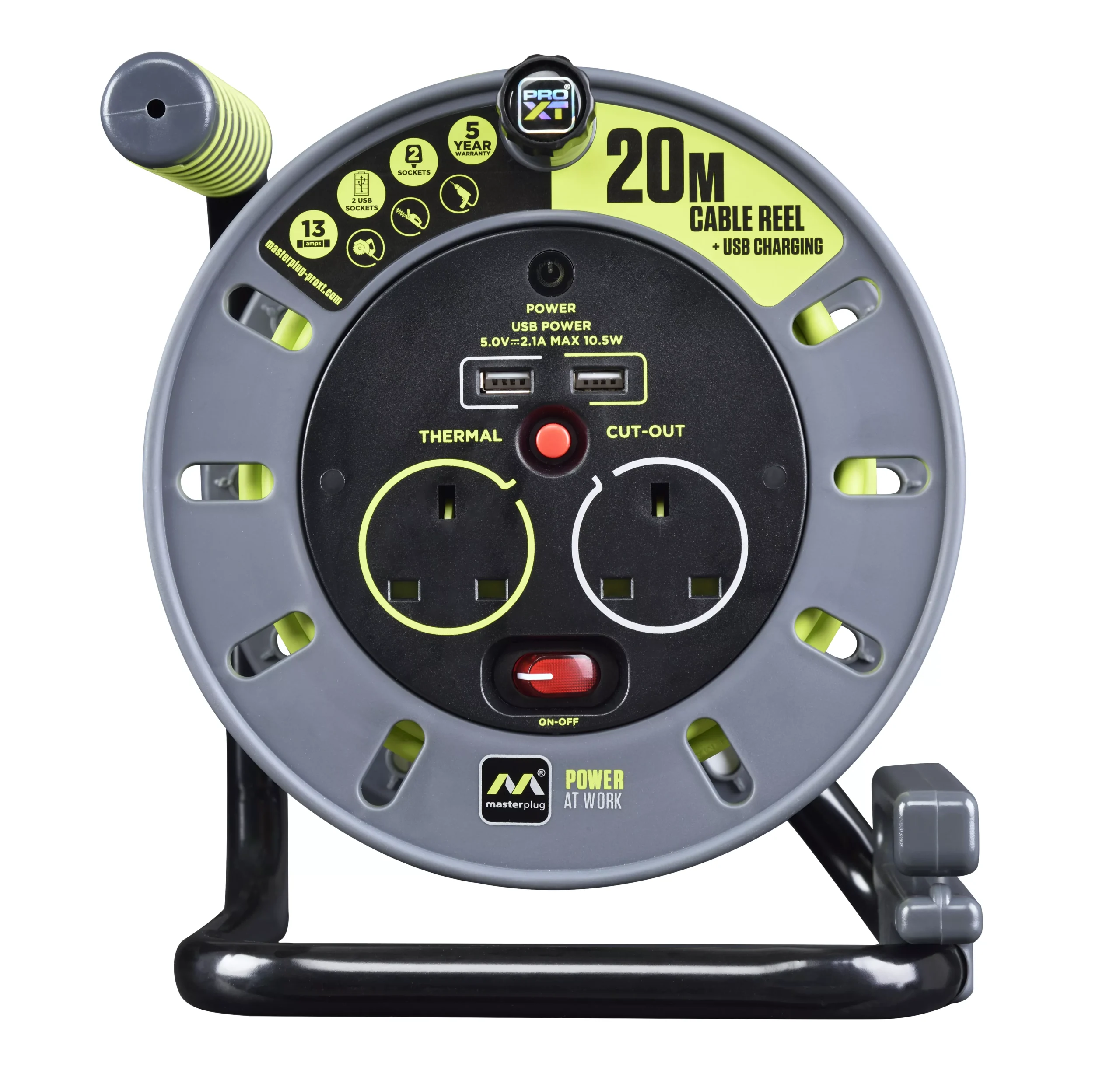 - Twenty metres of cable with USB (2 x 2.1A) charging – to extend the reach of the socket and charge your portable devices