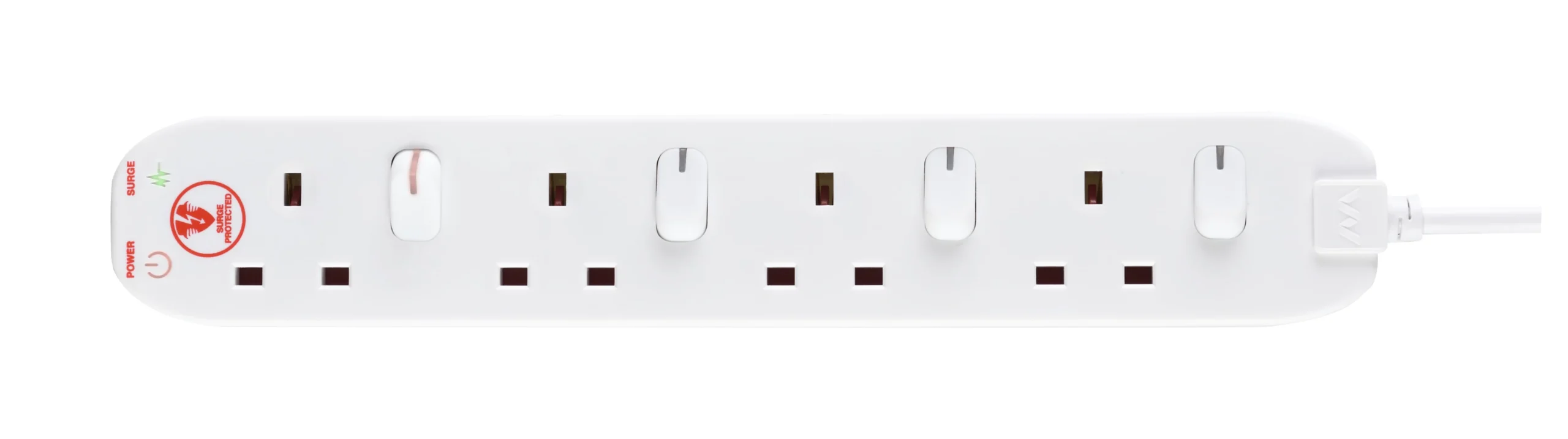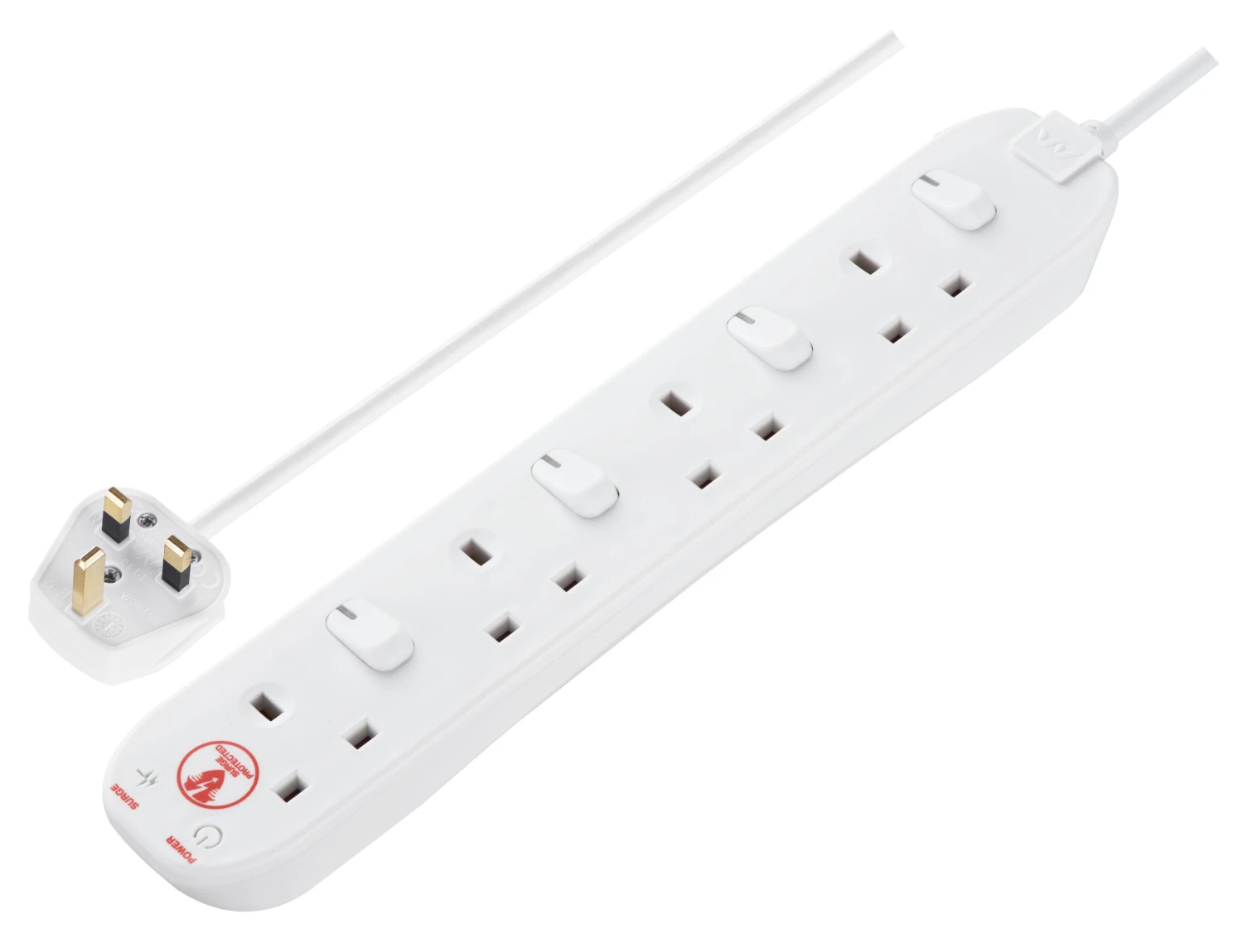 This four-gang surge protected extension lead allows you to individually control your plugged-in electrical appliances. The white moulded extension lead has four sockets each with their own individual switch, letting you control different appliances individually, which helps you save power and avoid the risk of overheating.