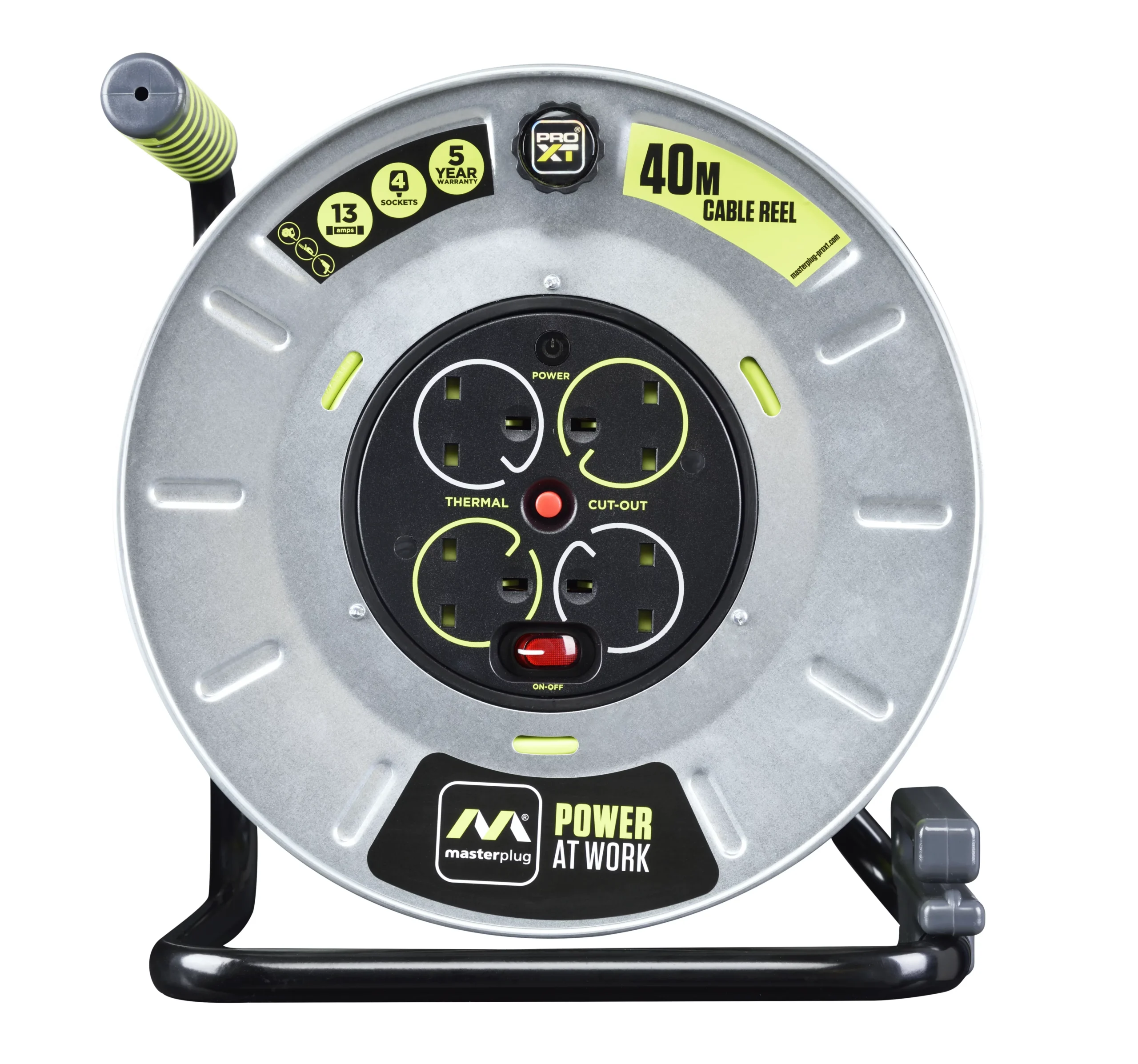 - Localised power switch and thermal cut-out – control the power where you are working and prevents the cable overheating when fully reeled and allows you to reset if cut-out occurs
