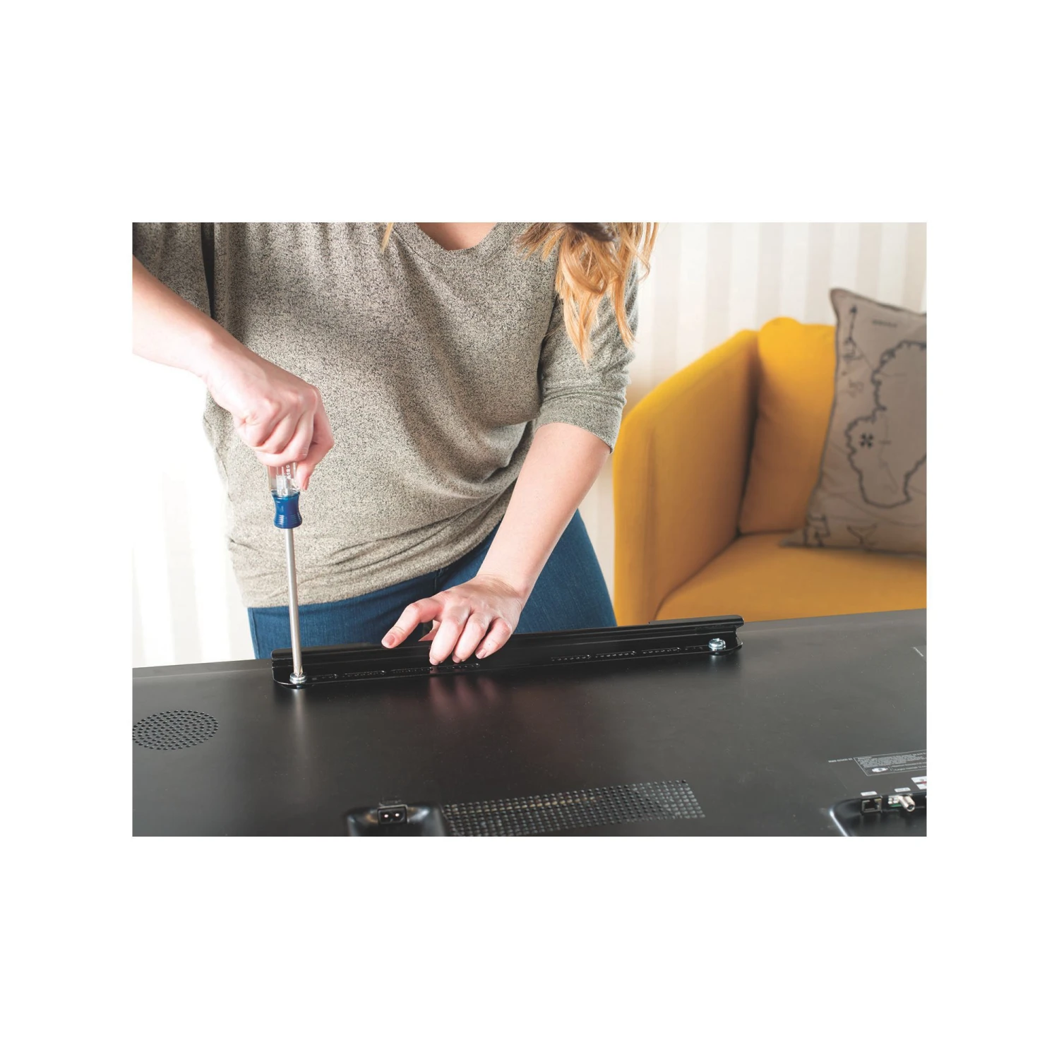 The SANUS SimplySafe mount is a low-profile wall mount solution for most 47″ – 80″ flat-panel TVs up to 135 lbs. Its low-profile design places the TV just 1.12″ from the wall, so it hangs like a work of art. Angled slots and an integrated level make levelling and installation quick and easy. An innovative safety latch secures your TV to the wall for added safety