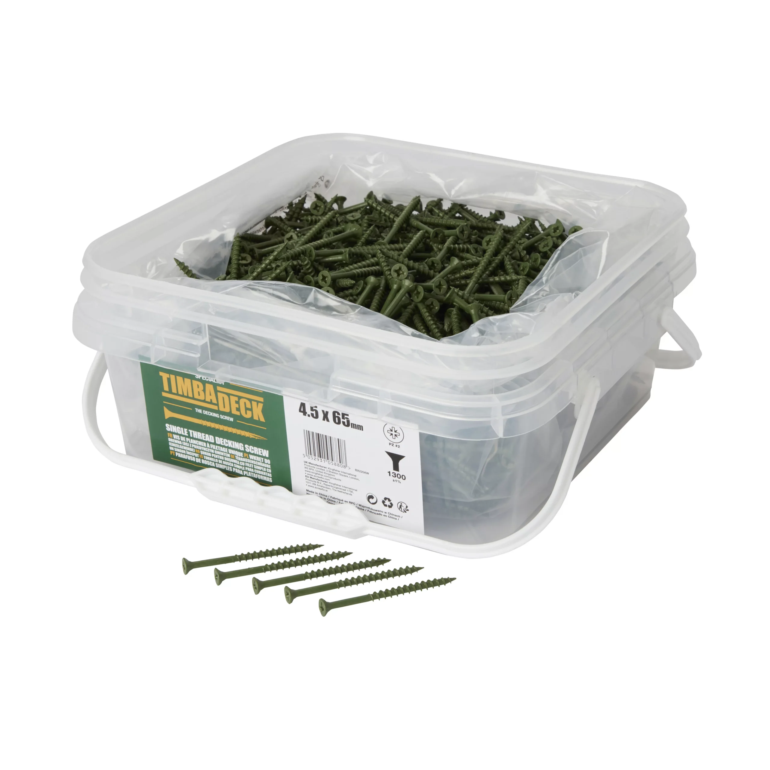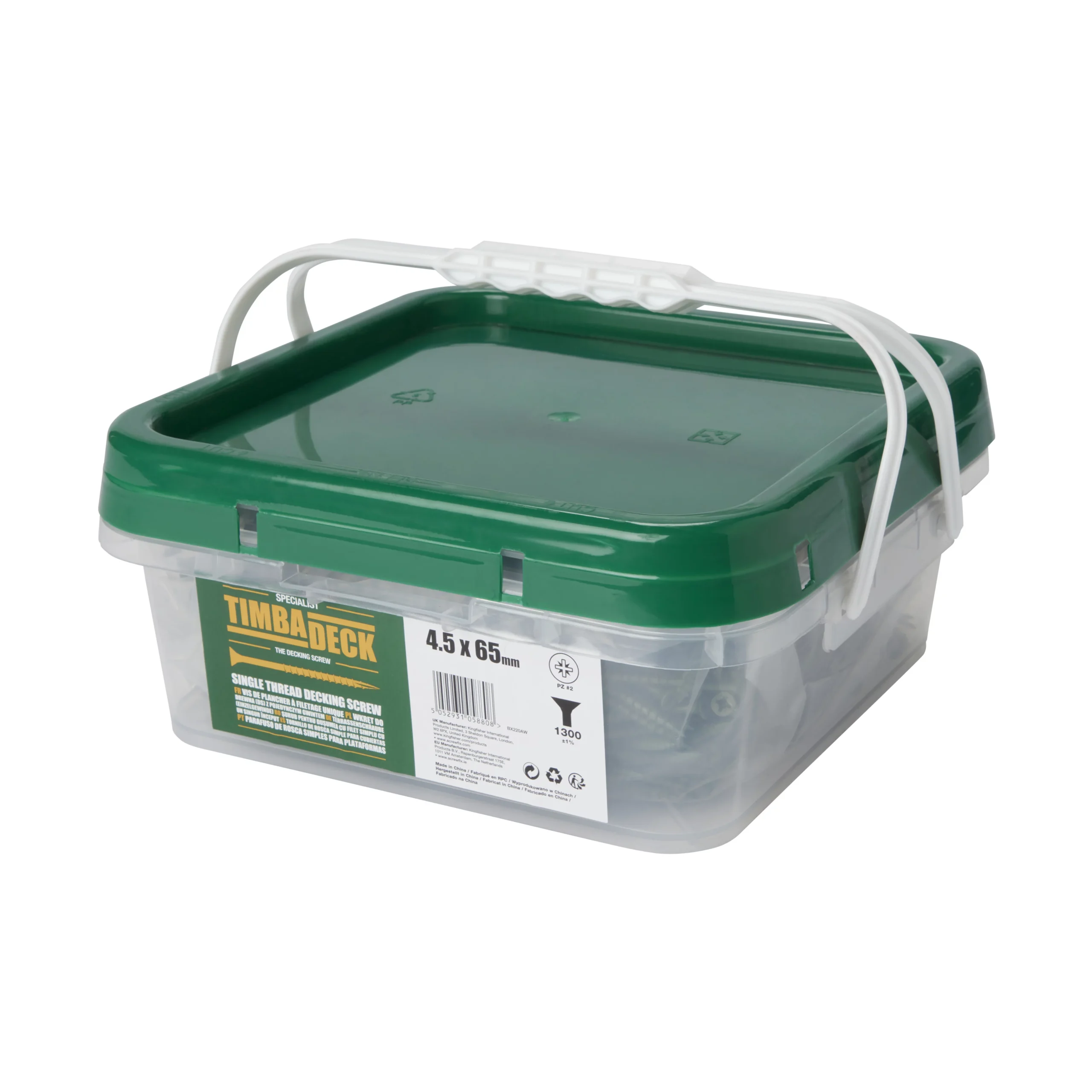 This pack of Pozidriv drive recess double countersunk head decking screws are constructed from durable carbon steel, they are 65mm in length and come partially threaded. They have 40° angle thread with slash point and under head ribs. They’re ideal for a range of DIY applications.