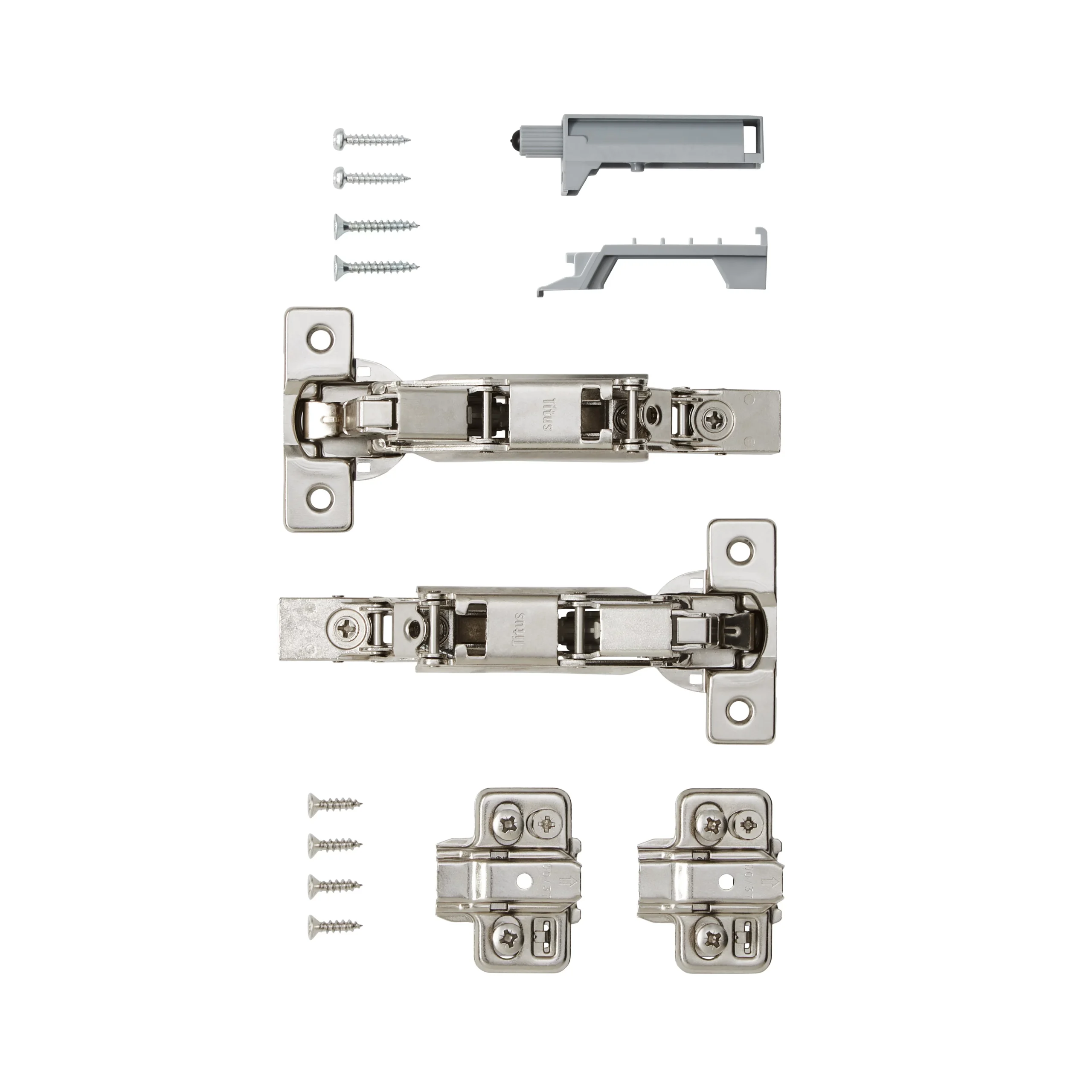 - Comes with 2x hinges, 2x base plates, 2x hinge arm cover, 1x soft close buffer and 4x hinge cup fixing screws