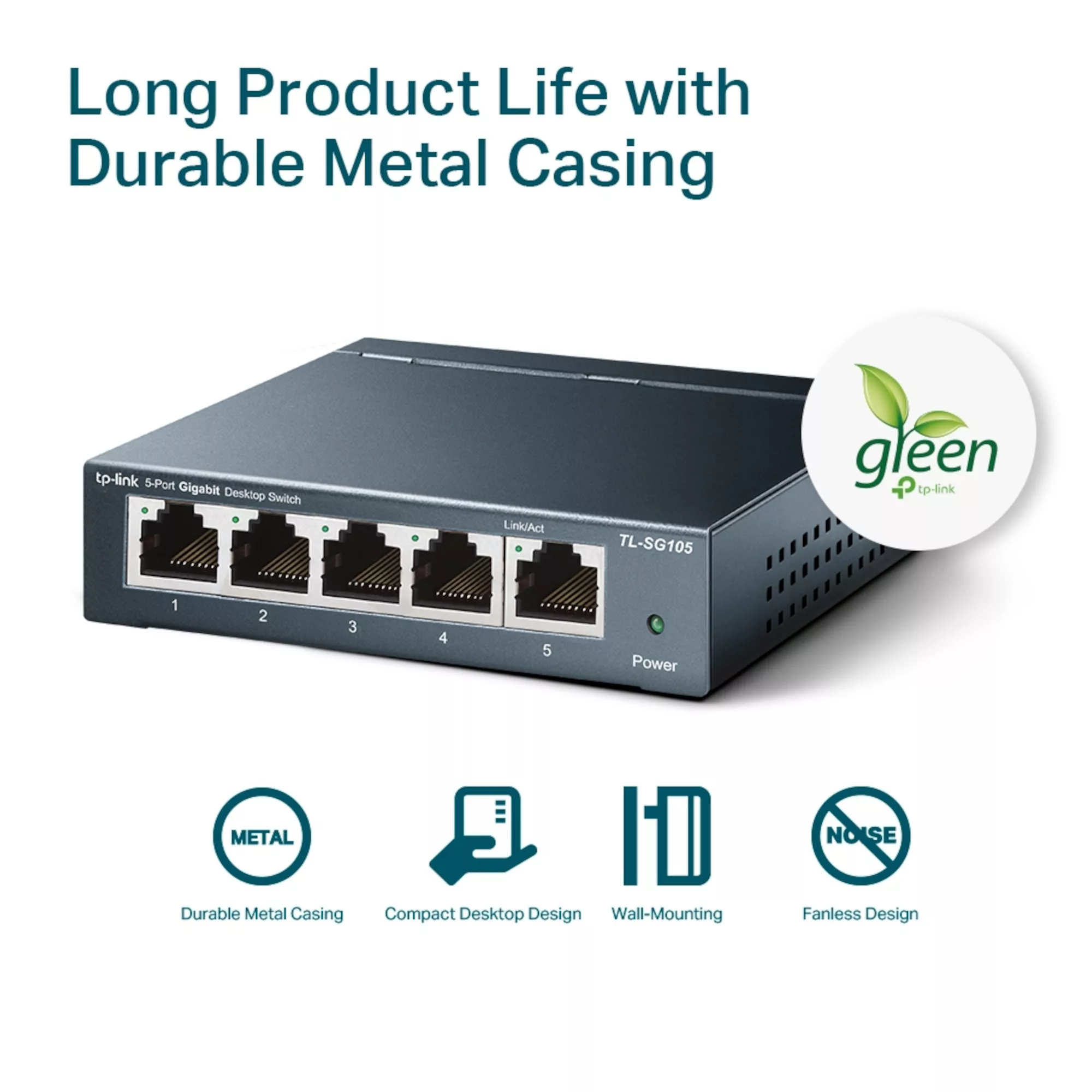 - 5 port Gigabit Ethernet switch – auto-negotiation RJ45 ports ideally expand network capacity