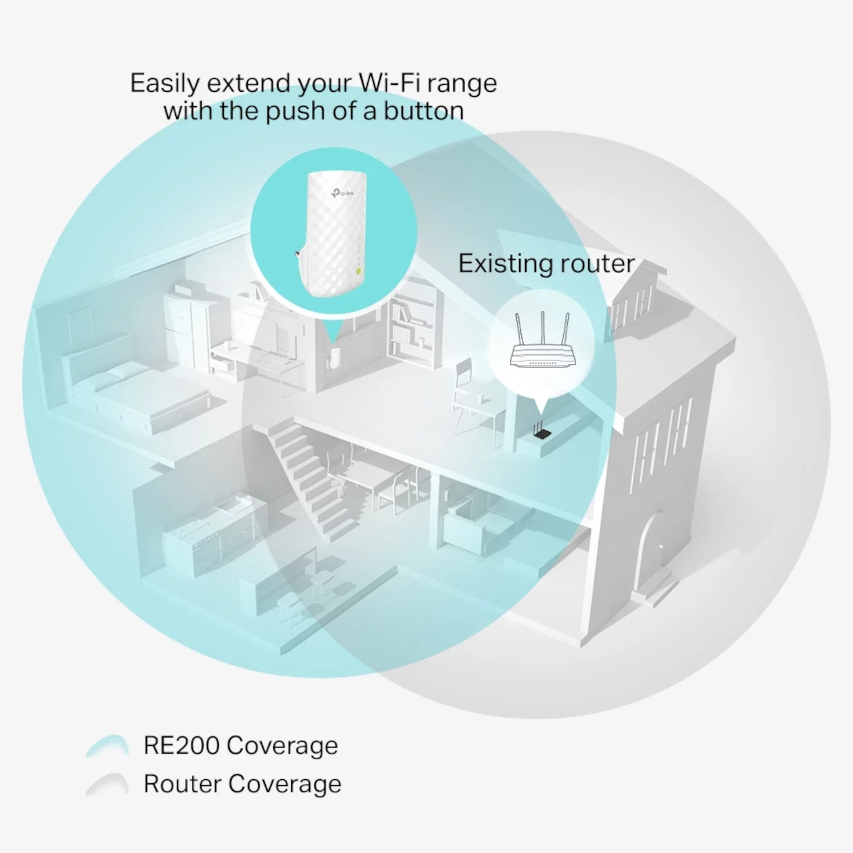 - The range extenders wireless AC technology creates stronger Wi-Fi connections across your home. Works with any standard router or access point. With an Ethernet port, RE200 can function as a wireless adapter to connect wired devices like desktop, gaming consoles, Blu-ray® players, and Internet TVs.