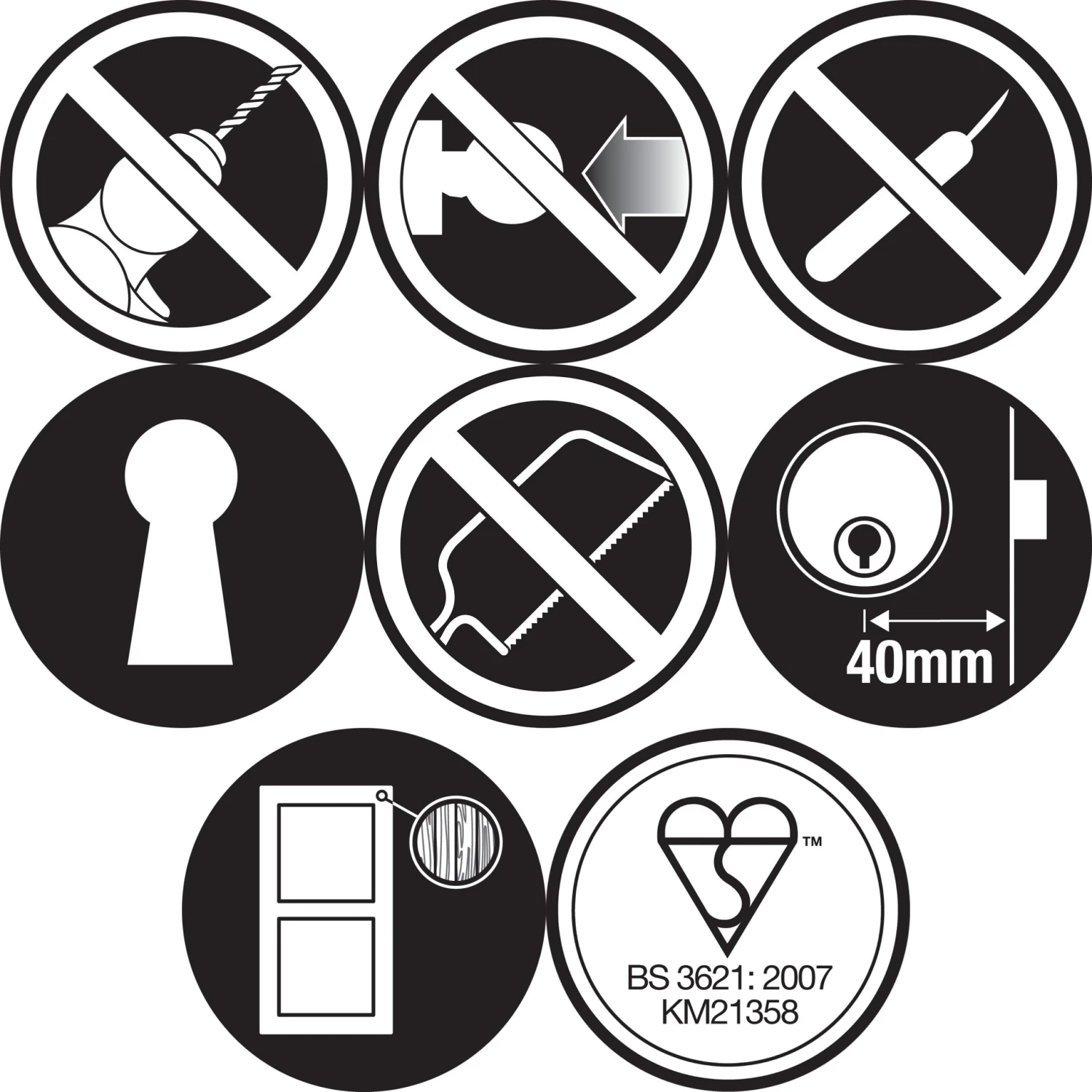 - Kitemarked to BS3621:2007 and CE marked for use on fire doors
